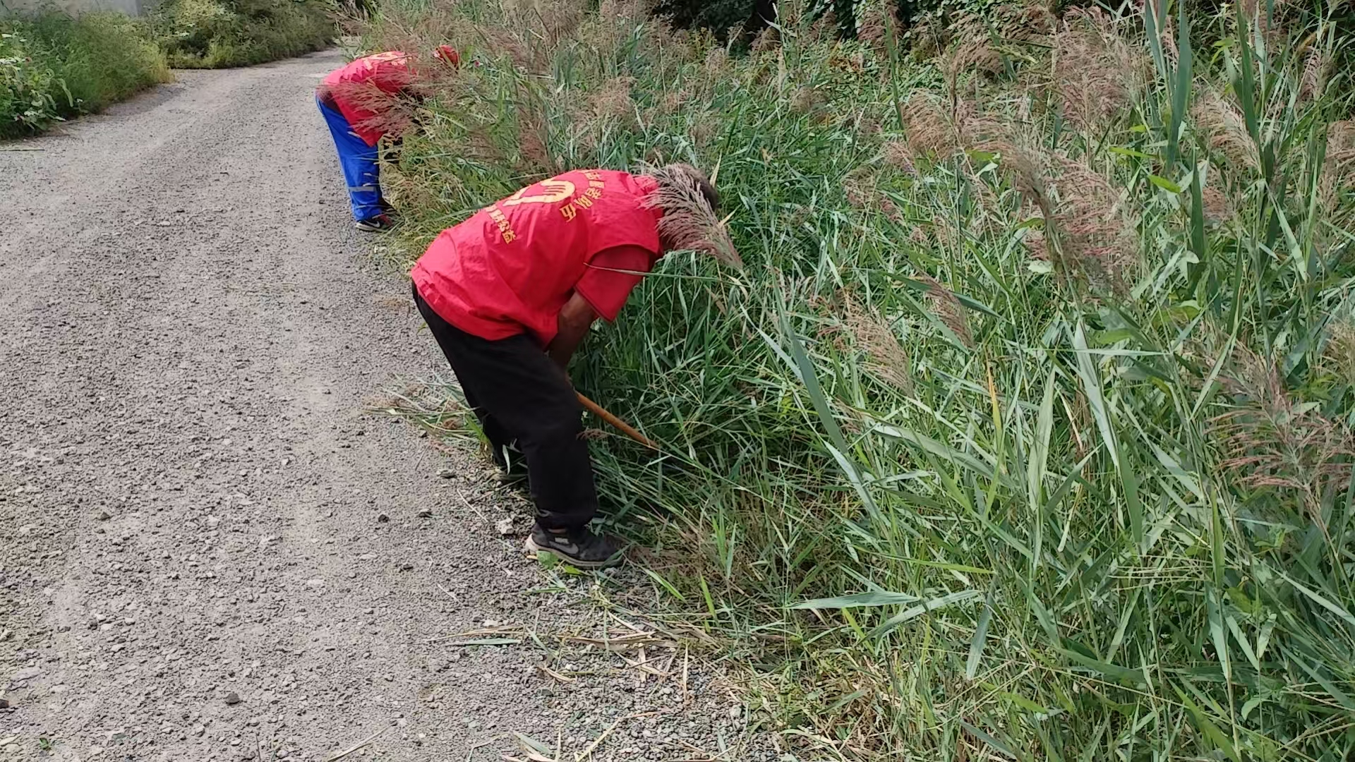 活動現(xiàn)場,大家手里拿著鐮刀、鋤頭、鏟子等清理工具清理雜草,志愿者們充分發(fā)揚不怕苦、不怕累、不怕臟的精神,甩開膀子、挽起袖子、提起工具,不放過一個角落,不落下一根雜草,對道路兩側(cè)的蘆葦塘、房前屋后雜草、垃圾進行集中清理。