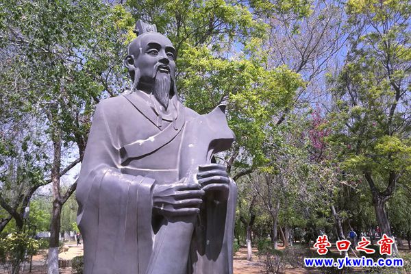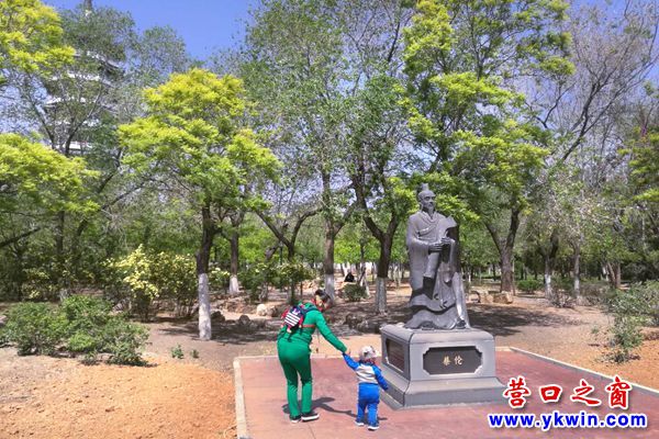 營口楞嚴(yán)寺公園里豎立著12尊古代先賢塑像,其中,蔡倫的塑像好像有點(diǎn)問題。