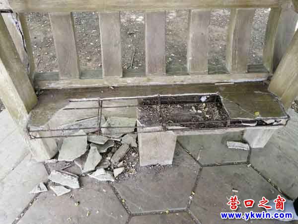 當(dāng)下我市正在開(kāi)展“創(chuàng)城”和“營(yíng)口有禮”主題活動(dòng),而公園涼亭的慘狀卻與主題活動(dòng)不搭調(diào)。建議有關(guān)部門(mén)盡快修善。