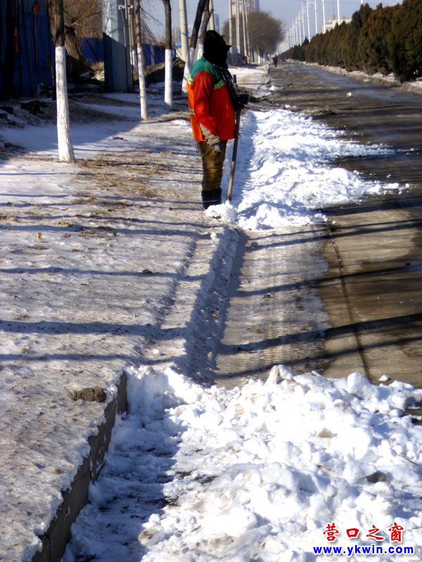 營口幾天前下的這場(chǎng)雪是2009年以來營口最大的一場(chǎng)雪,為了清掃路面上的積雪環(huán)衛(wèi)工人已經(jīng)非常疲憊了。所以,對(duì)于清了也白清的積雪就別再勞累環(huán)衛(wèi)工人了。