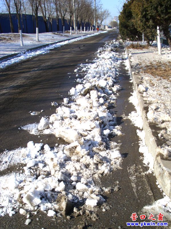 第一,金山大街足夠?qū)掗?,馬路牙子根底下的那點(diǎn)雪并不妨礙通行,再說,行人和行車都不可能貼著馬路牙子走。第二,眼下天氣回暖,馬路牙子根底下那點(diǎn)雪不清除用不了幾天也會(huì)自動(dòng)融化。第三,把馬路牙子根底下的雪折騰到馬路中反倒使馬路變窄了。