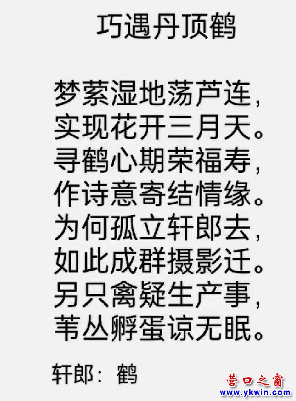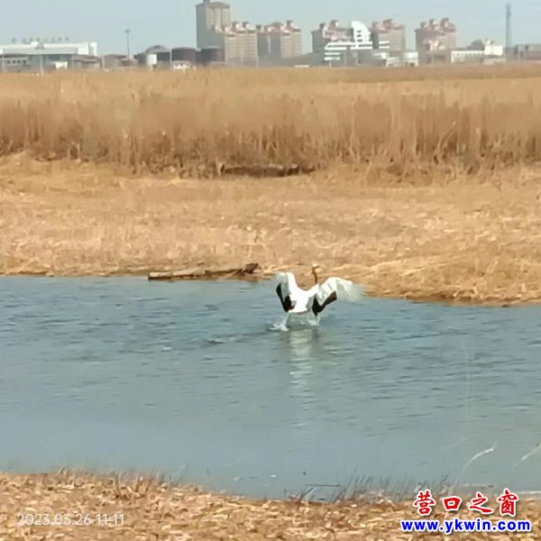 (營口之窗“百姓說事 ”)營口市永遠(yuǎn)角濕地:仲春巧遇丹頂鶴