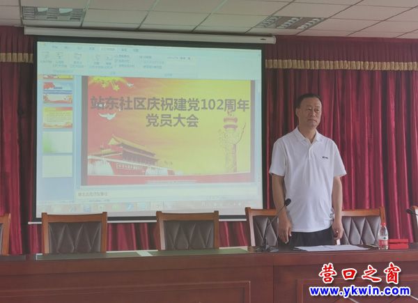 站東社區(qū)黨委書(shū)記劉慶忱為黨員講黨課。