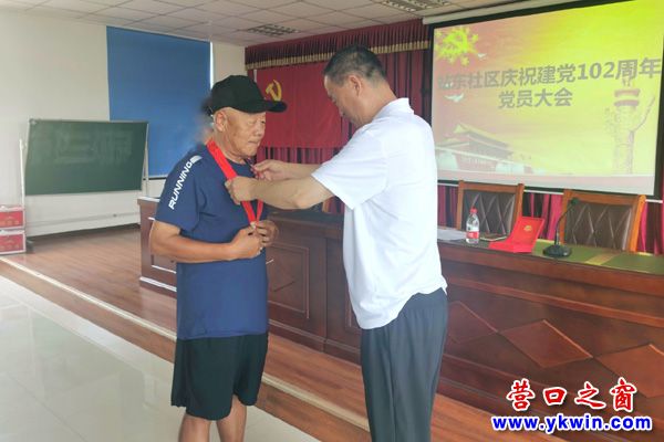 向老黨員頒發(fā)入黨五十周年紀(jì)念章。