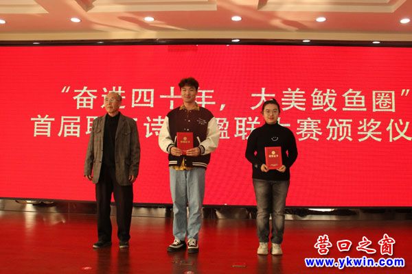 鲅魚(yú)圈區(qū)總工會(huì)主任袁 林、鲅魚(yú)圈區(qū)總工會(huì)部長(zhǎng)宋 寒、營(yíng)口市詩(shī)詞學(xué)會(huì)顧問(wèn)李秀文、鲅魚(yú)圈區(qū)詩(shī)詞學(xué)會(huì)顧問(wèn)鄭日清、鲅魚(yú)圈區(qū)詩(shī)詞學(xué)會(huì)副會(huì)長(zhǎng)吳明坤、鲅魚(yú)圈區(qū)詩(shī)詞學(xué)會(huì)副會(huì)長(zhǎng)高 飛、鲅魚(yú)圈區(qū)詩(shī)詞學(xué)會(huì)副會(huì)長(zhǎng)劉連芳、鲅魚(yú)圈區(qū)詩(shī)詞學(xué)會(huì)副會(huì)長(zhǎng)劉鐵士等領(lǐng)導(dǎo)出席了頒獎(jiǎng)典禮。