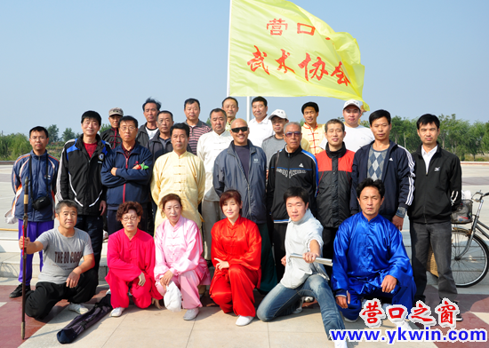 王丕民(下排左一持劍者)和武術(shù)協(xié)會隊員合影