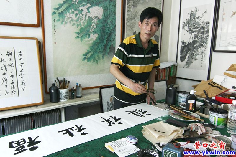 初見(jiàn)馮永寬,普通的衣著、樸實(shí)的言語(yǔ),絲毫讓人想不到這是一位小有名氣的畫(huà)家。從兒時(shí)因?yàn)榭吹酵馄爬C花愛(ài)上了畫(huà)畫(huà),今年46歲的馮永寬的畫(huà)作之路已經(jīng)走了近40年。如今,馮永寬已是省書(shū)法家協(xié)會(huì)、省美術(shù)家協(xié)會(huì)、省藝術(shù)教育協(xié)會(huì)會(huì)員,其畫(huà)作已經(jīng)自成一體,受到了很多專(zhuān)業(yè)人士的肯定,先后獲得縣級(jí)、市級(jí)、省級(jí)、國(guó)家級(jí)榮譽(yù)證書(shū)上百本。