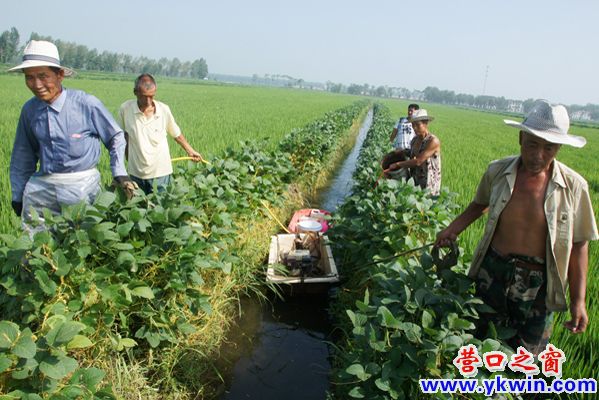 兩年前,原五大隊副大隊長張榮武組織兩名工人進行植保機械革新,他們將循環(huán)泵和配好的藥劑及液體肥裝在一只焊接好的小鐵船上,組織2至4人利用稻田的水渠拖拽、另外的4人同時手持噴頭同步作業(yè),每個人的作業(yè)寬度為7至8米。由于作業(yè)用水從水渠中自動汲取,保證了藥液和液態(tài)肥達到稀釋倍數(shù),加之4人同步作業(yè),噴施的范圍彼此交叉,作業(yè)時霧化效果十分理想。利用天然的水網,革新后的植保機械作業(yè)效率驚人,吸引了省內外的植保機械生產廠家紛至沓來、參觀學藝。