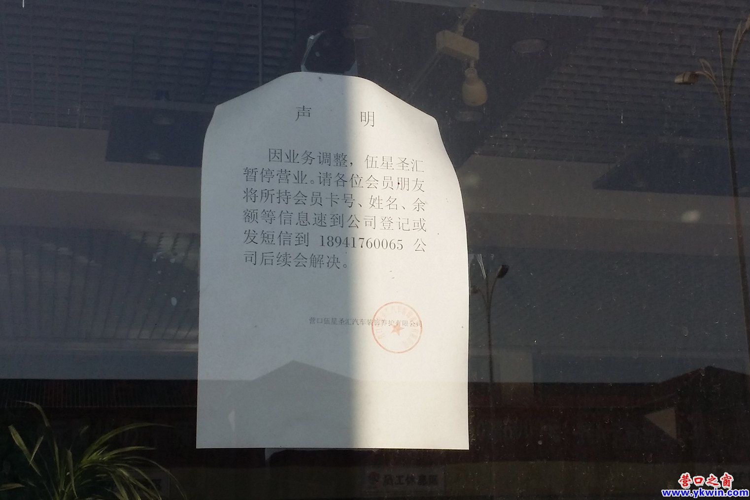 通過公司的玻璃窗,楊先生看到室內(nèi)一片狼藉。落地玻璃窗上貼著一則聲明,聲明中寫有一個電話號碼,告知VIP會員可撥該打電話聯(lián)系,并聲稱會后續(xù)處理,結(jié)果楊先生連續(xù)多天撥打此電話一直無人接聽。