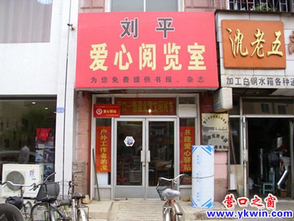 2005年,他們買下了劉平照相館右鄰的一個90平方米的兩層店鋪,成立了劉平愛心閱覽室。為此,他們自費征訂了百余種報刊,購置了書報架和桌椅等設施,還招聘了一名女圖書管理員。由于這里遠離營口市圖書館,劉平愛心閱覽室開張后吸引了附近眾多老年讀者前來閱讀。后來,根據(jù)市民和外來農(nóng)民工的需求,劉平愛心閱覽室又陸續(xù)增設了“4050”失業(yè)職工再就業(yè)信息窗、外來農(nóng)民工郵件接收站、環(huán)衛(wèi)工人休息廳、出租車兌換零鈔點、公共衛(wèi)生間和門前車站擺放長椅等多種免費服務項目。