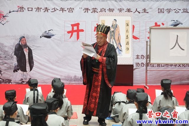 正衣冠、行拜師禮、朱砂啟智、啟蒙開筆、吟詠詩賦、擊鼓銘志。營口市益民小學(xué)四年級的梁嘉駿跟其他59名來自各個學(xué)校的學(xué)生身著漢服,在少年宮度過了一個難忘的周日上午。這一天,他們參加了營口市青少年主辦、營口市中華文化傳播志愿者協(xié)會協(xié)會的開蒙儀式。這是營口市青少年宮2015年第十四屆假日歡樂宮系列活動的第三項(xiàng)內(nèi)容之一,活動同時拉開了“開蒙啟智,完美人生”——營口市青少年宮公益大講堂系列活動的序幕。