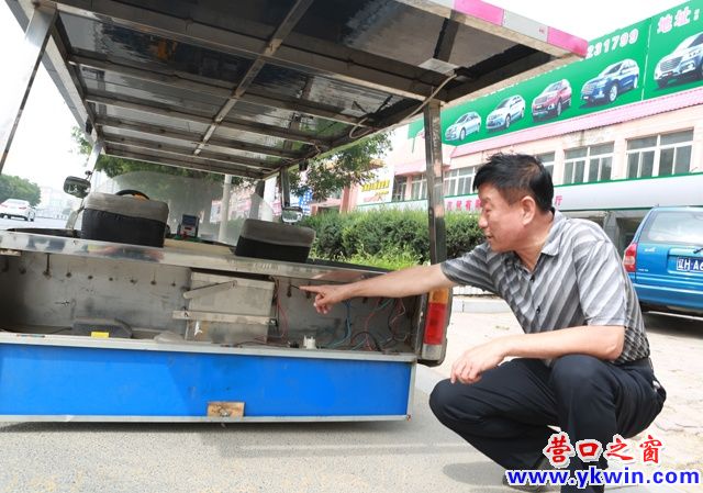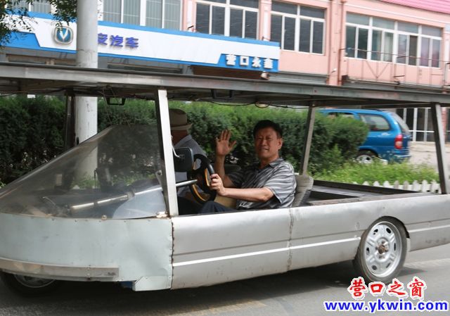 今年64歲的王永志住在蓋州市西城辦事處轄區(qū),經(jīng)營(yíng)一家機(jī)械加工廠已經(jīng)30多年。兩年前,他開始查資料、畫圖紙、找配件,試圖打造出一款用太陽(yáng)能做能力的汽車。功夫不負(fù)有心人,第一臺(tái)太陽(yáng)能動(dòng)力汽車終于制成了,但由于太陽(yáng)能電池板的發(fā)電功率較小,汽車的續(xù)航能力明顯不足,他繼續(xù)改進(jìn),重新選擇了一款新式的太陽(yáng)能電池板,并用鋰電池儲(chǔ)存電能,這款太陽(yáng)能電池板長(zhǎng)達(dá)4米,寬1.7米,重新裝配到車架上后,發(fā)電能力有所增強(qiáng),即使在夜間,儲(chǔ)存的電能也能驅(qū)使汽車行駛40公里,白天,王永志駕駛這輛觀光車曾經(jīng)行駛240公里,動(dòng)力依然很強(qiáng)勁。