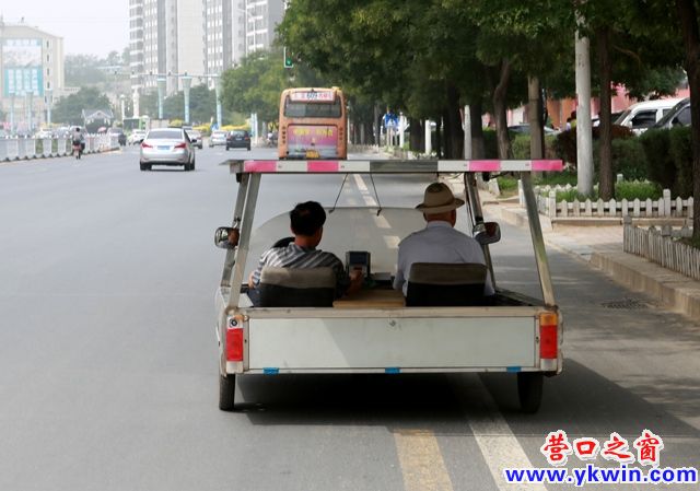 9月5日上午,王永志帶著表哥從蓋州到鲅魚圈白沙灣旅游,太陽(yáng)能觀光汽車途經(jīng)鲅魚圈市區(qū),市民紛紛駐足觀看這輛造型特殊的“大篷車”。