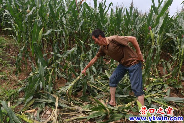 楊勝林正在清理野豬禍害的玉米;