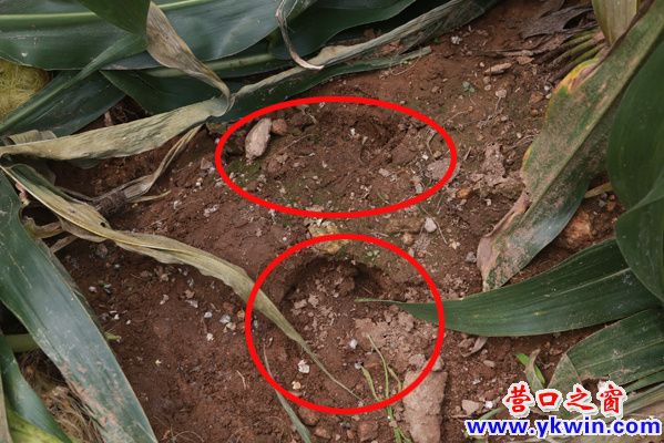 野豬在玉米地留下的腳??;