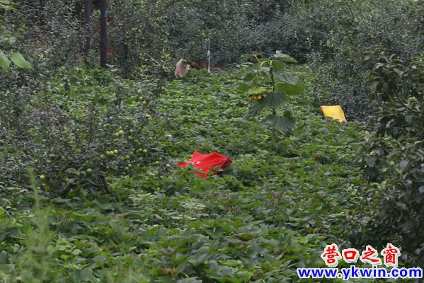村民在地瓜地里放置有顏色的布塊,驅(qū)趕野豬;