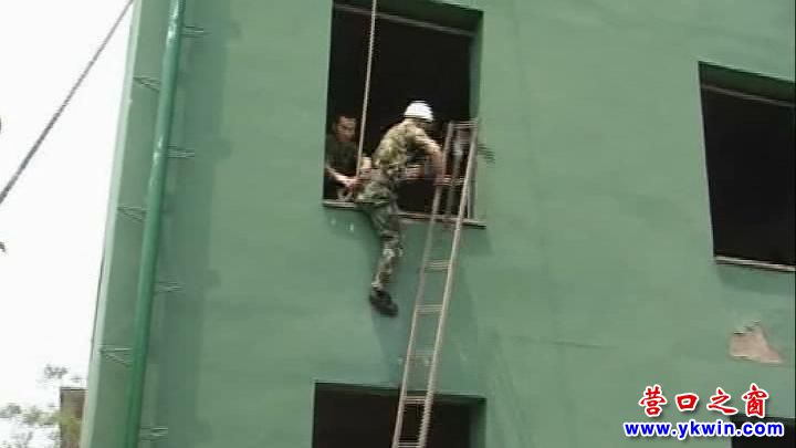 (圖為牟東淼在為戰(zhàn)士們示范攀登高梯)