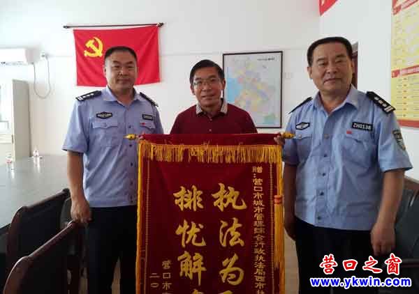 文明執(zhí)法,創(chuàng)建溫馨家園。近日,營(yíng)口市綜合執(zhí)法局西市執(zhí)法大隊(duì)收到一面華城花園小區(qū)華鴻物業(yè)公司和業(yè)主委員會(huì)贈(zèng)送的錦旗,上書“文明管理執(zhí)法,創(chuàng)建溫馨家園”兩行大字,對(duì)西市執(zhí)法大隊(duì)配合華鴻物業(yè)、西市區(qū)五臺(tái)子辦事處、西市區(qū)物業(yè)辦聯(lián)合高效查處小區(qū)內(nèi)亂堆亂放、亂搭亂建現(xiàn)象表示感激。