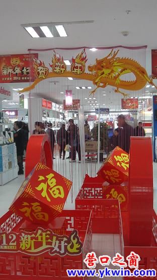 2012年元旦,大石橋市興隆商場布置一新,為前去購買年貨的消費(fèi)們者營造了紅紅火火的新年景象。