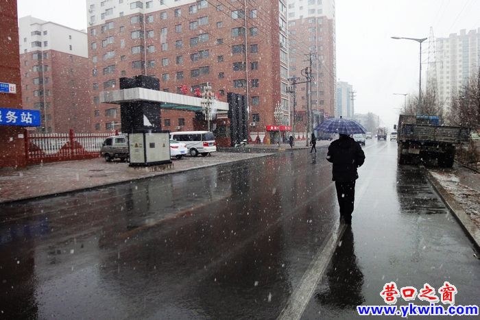 今天下午,營口市普降雨加雪,由于氣溫已經(jīng)回暖,雪下到路面即刻融化,目前沒有造成積雪,對交通影響不大。
