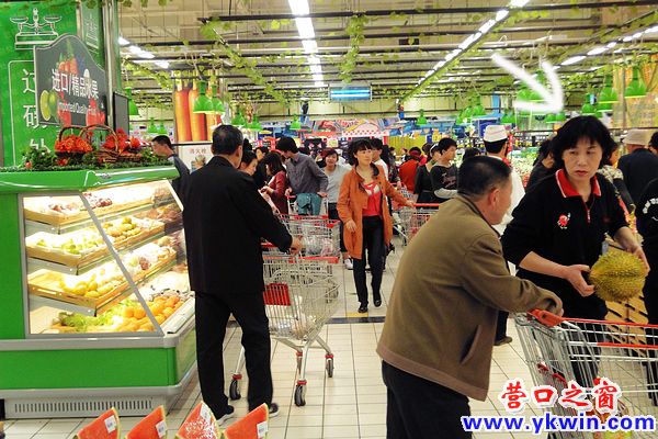 五一小長(zhǎng)假期間,營(yíng)口大潤(rùn)發(fā)超市人頭傳動(dòng),大家都在為節(jié)日張羅著,在食品區(qū)筆者發(fā)現(xiàn)人群中大步向前的奔跑哥,好像害怕要購(gòu)買的東西被搶光似的向蔬菜水果去跑去,轉(zhuǎn)頭看再看水果區(qū),一位女售貨員正在雙手拿著沉甸甸全身都是硬刺的榴蓮向顧客介紹著,榴蓮姐拿著榴蓮就像保齡球一樣在她手中運(yùn)用自如。