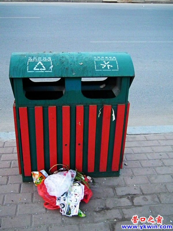 今晨,途徑新興大街星光小區(qū)路段,看到在臨街的回收箱底部放著一袋垃圾,與近在咫尺的垃圾箱形成強烈的發(fā)差。市政府正在大力倡導‘清潔營口’,而更該‘清潔’的恰恰是我們相關市民的素質(zhì)與環(huán)保意識,更有為他人著想的品質(zhì)!