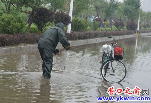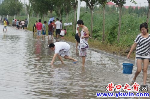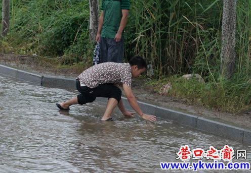 這位捕魚的市民說,雨水沖垮了魚塘,大量的魚順水游到了馬路上