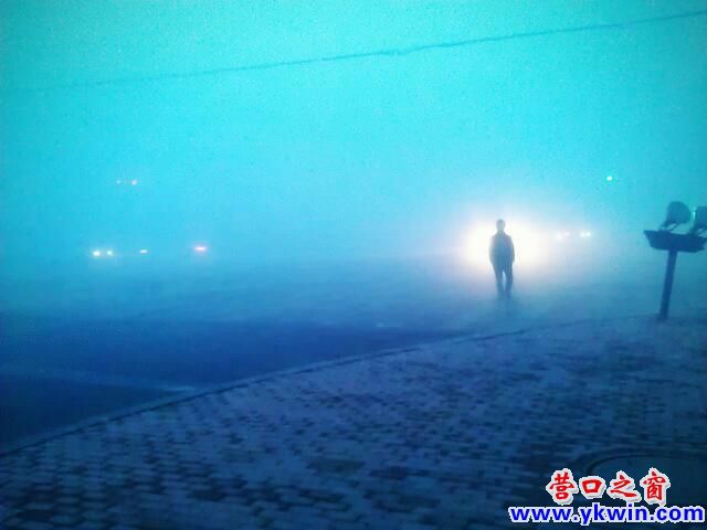 想打車的路人被無情的大霧給埋沒在了一邊