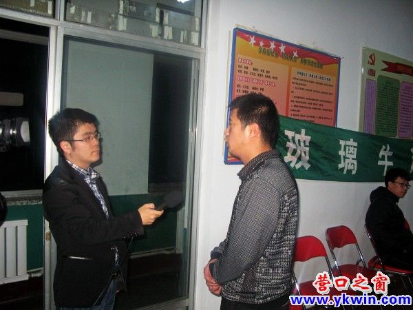 電視臺記者采訪玻璃牛話劇社社長。