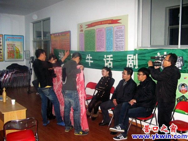 2月27日晚六時許,營口電視臺《營口新聞》欄目組記者來到學(xué)府園社區(qū)玻璃牛話劇社的排練場地,對玻璃牛話劇社成員進行了相關(guān)采訪。社長王人龍談了話劇社的現(xiàn)狀和對未來發(fā)展的整體規(guī)劃。社員小猴做為四歲孩子的母親,也介紹了她如何協(xié)調(diào)家庭、工作與話劇社三者之間的關(guān)系,并合理的運用時間,以最優(yōu)化的方式豐富了自己的生活品質(zhì)。其他成員也紛紛傾訴了自己與話劇社結(jié)緣的過程,以及從不熟悉到喜歡進而熱愛話劇的漸進過程,在這個充滿正能量的話劇團隊里,社員們不盡體會到了表演的樂趣,更提升了自身的品味與素養(yǎng)。隨后話劇社成員進行了第五幕話劇的排練。