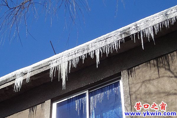 行走中的群眾 數(shù)目驚人的冰棱 危險(xiǎn)的下落物