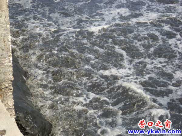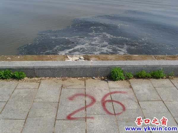 在營口大遼河南岸營口郵政管理局西行數(shù)百米寫著“26”的下面,有一個巨大的排污口不停的向大遼河吐著污水。