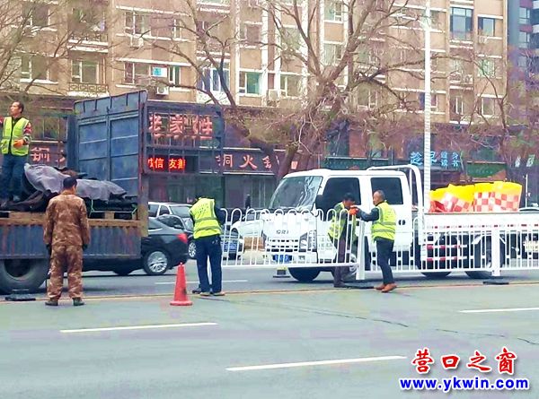 (營(yíng)口之窗網(wǎng)訊 胡 然)12月9日,一支安裝隊(duì)在營(yíng)口市渤海大街中央安裝新式隔離護(hù)欄將該街一分為二。與以前的隔離護(hù)欄不同的是,這次更新的隔離護(hù)欄沒有廣告,不遮擋視線,消除了安全隱患。