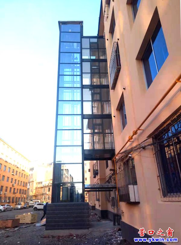 (營口之窗網(wǎng)訊 胡 然)12月14日,在營口市勤儉小區(qū)(在大潤發(fā)超市西鄰)見到一棟居民樓外安裝了一部電梯,據(jù)施工人員講,它很快就要開通。
