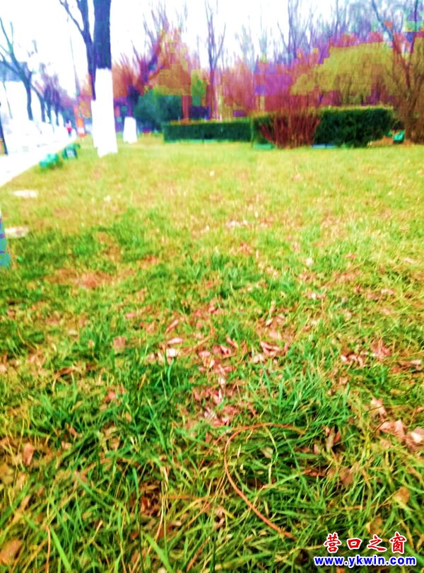 (營口之窗網(wǎng)訊 胡 然)12月14日(大雪第八天),來到營口市中天市府廣場(chǎng)和營口市泰和園公園見到地上的小草那是一片鮮活,而往年的此時(shí)此刻到這里看到的是一片凋零。營口今冬有多暖從鮮活的小草就能看出來。