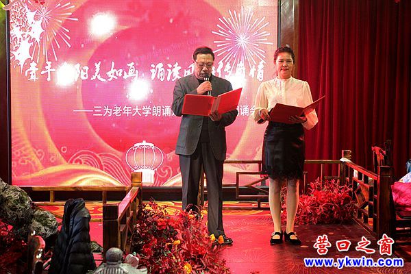 (營口之窗網(wǎng)訊 李凱)昨天,營口三為老年大學(xué)“牽手夕陽美如畫 誦讀風(fēng)雅傳真情”迎新春詩歌朗誦會在市格林酒店濃情上演。大家滿懷激情,用詩歌傳遞著對祖國的熱愛!對家鄉(xiāng)的熱愛!擁抱新春的到來! 照片提供:小星星