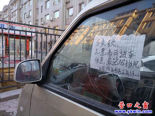 3月21日,在營口市西市區(qū)中天新城小區(qū)13甲、15甲樓之間,停放一臺(tái)遼H6P244的微型面包私家車,車主24小時(shí)不鎖車,只為給志愿者留個(gè)“休息點(diǎn)” ,不禁伸出大拇指為這位好心的車主點(diǎn)贊。