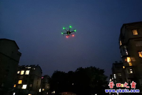 (營口之窗網(wǎng)訊 李凱)“請不要在外聚集,馬上回到自己家中...” 昨晚,在營口市西市區(qū)中天新城小區(qū)內(nèi),一架警用無人機正對違規(guī)在小區(qū)內(nèi)個別散步的居民進行勸返,在空中飄來的勸阻語音下,居民自覺回到家中。