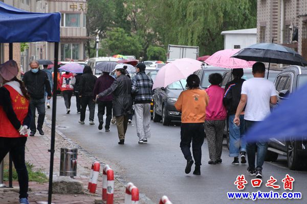5月26日,營口迎來降雨天氣,營口市西市區(qū)西市場社區(qū)啟動第十一輪全員核酸檢測,雖然下著雨,但現(xiàn)場秩序井然。