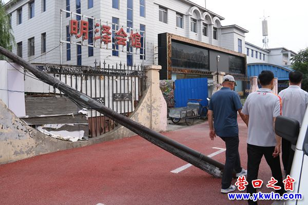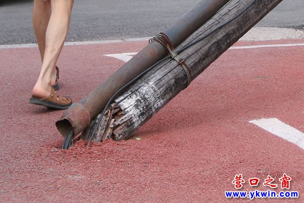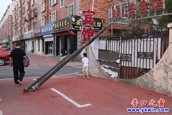 營口市:線桿砸圍欄 月余無人管