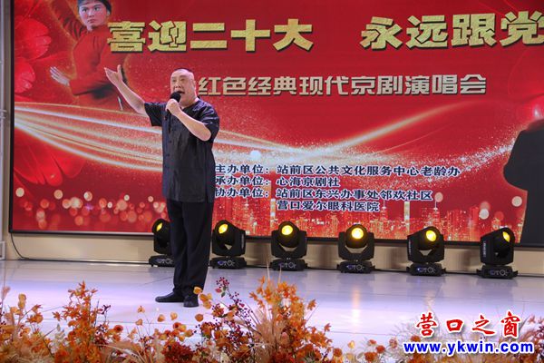 本次京劇演唱會(huì)由站前區(qū)公共文化服務(wù)中心老齡辦主辦,心海京劇社承辦,站前區(qū)東興辦事處鄰歡社區(qū)、營口愛爾眼科醫(yī)院協(xié)辦。