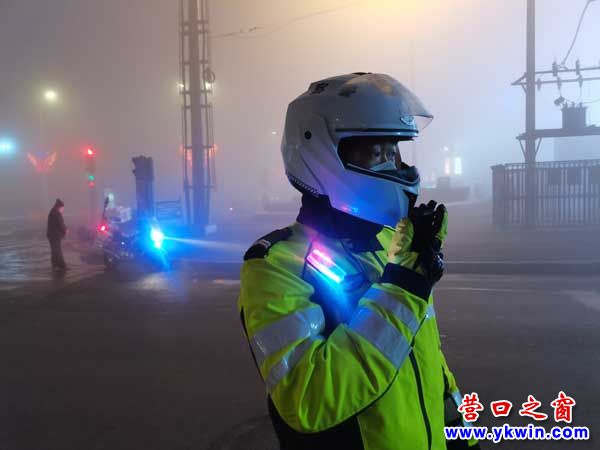 (營口之窗網(wǎng)訊 王宏鑫)1月26日,營口鲅魚圈區(qū)突遇大霧天氣,道路能見度極低嚴(yán)重影響了車輛安全行駛,為確保群眾大霧天氣安全出行。營口開發(fā)區(qū)公安局交警大隊(duì)騎警中隊(duì),迅速開啟惡劣天氣應(yīng)急響應(yīng)機(jī)制,全警動員、全天在崗,加強(qiáng)道路交通疏導(dǎo),防止發(fā)生交通擁堵和刮擦事故,確保我區(qū)道路安全、暢通、有序。