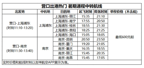 (營(yíng)口之窗網(wǎng)訊)營(yíng)口機(jī)場(chǎng)攜手吉祥航空 暑運(yùn)全新中轉(zhuǎn)航線來啦!