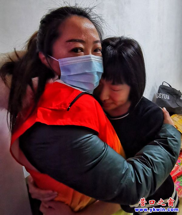 受訪者程瑩瑩感動的熱淚盈眶與志愿者擁抱