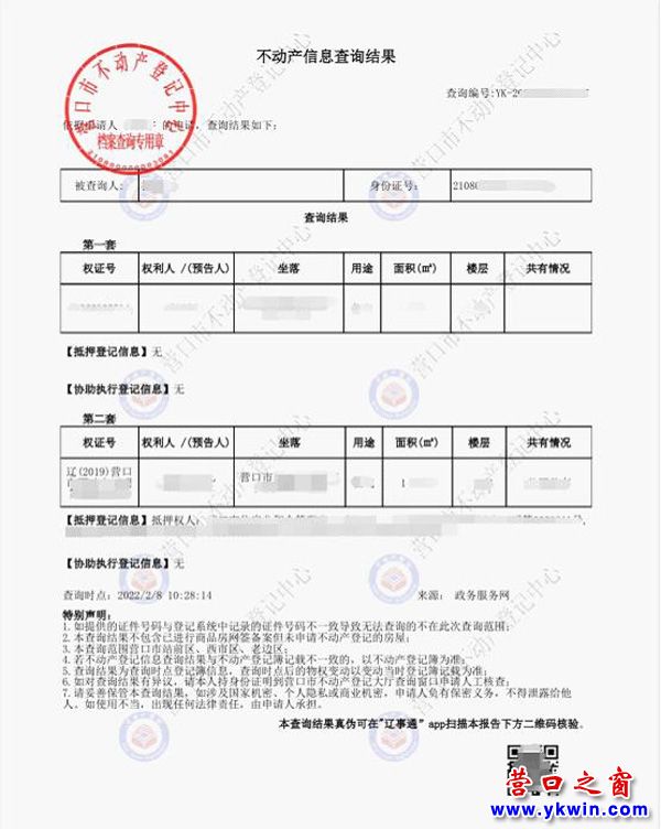 (營口之窗“關注營口”)關于統(tǒng)一啟用新版不動產信息查詢結果格式的通告