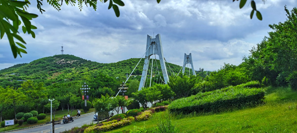 青龍山觀景塔和懸索大橋。
