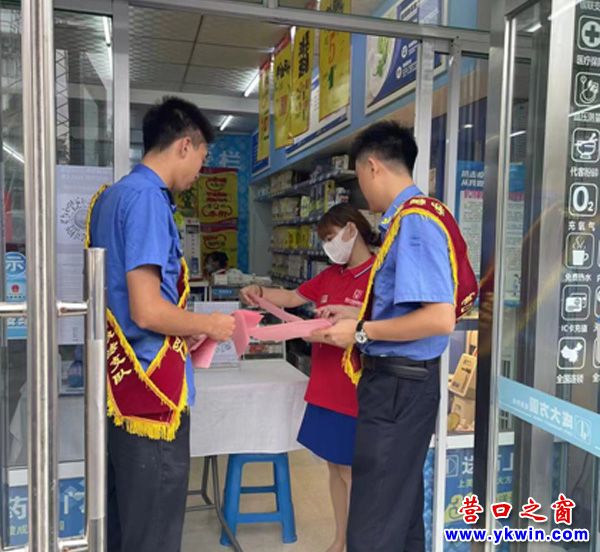 支隊志愿者向商戶發(fā)放宣傳單