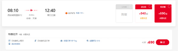 開航初期,營(yíng)口=天津單程最低票價(jià)170元起,營(yíng)口=西安單程最低票價(jià)690元起。