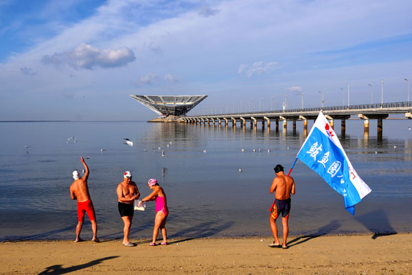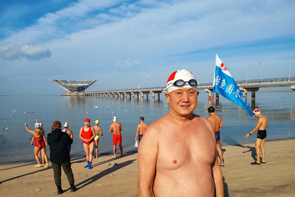 采訪期間,冬泳隊教練馬再良還告訴筆者:隊員們一年四季的空余時間都在海中游泳,冬天海水結(jié)冰了,隊員們就自己動手刨冰撈冰,然后在下水游泳,既激勵了斗志又釋放了心情
