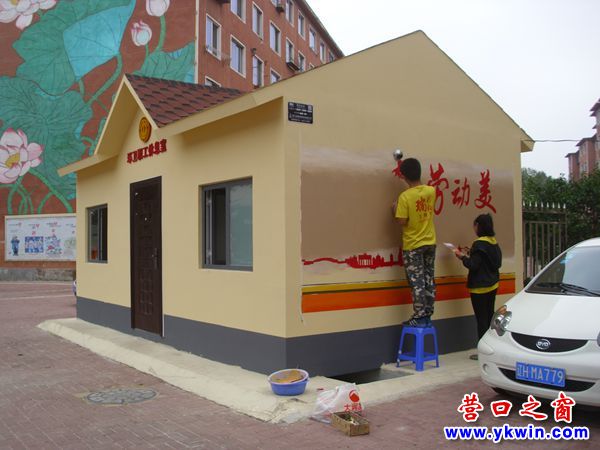 畫工正在為盼盼路環(huán)衛(wèi)職工休息室”添花“